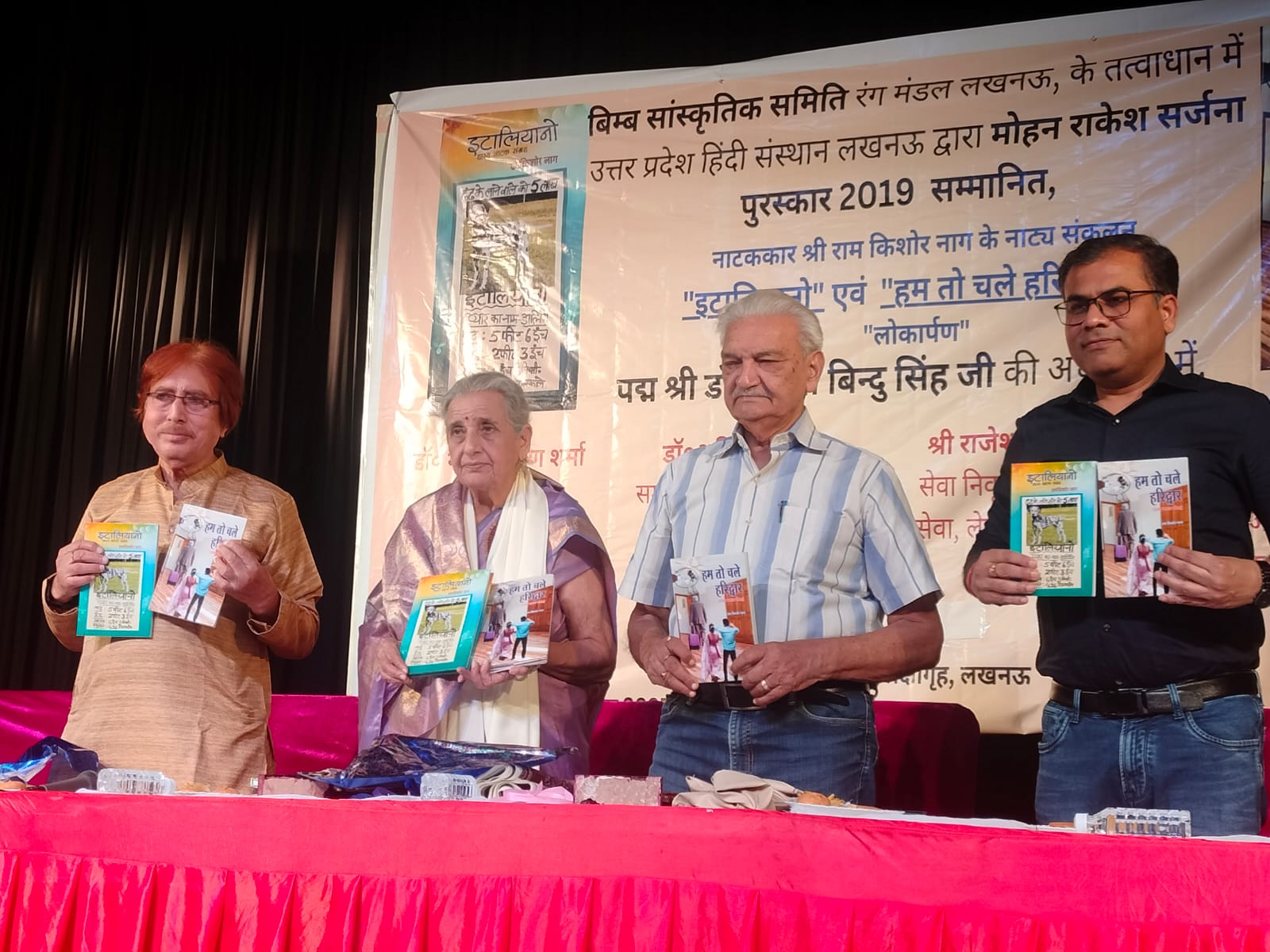 लखनऊ12 अक्टूबर बली हाल में आयोजित समारोह में आरके नाग से प्रसिद्ध रामकिशोर नाग के लिखे दो हास्य नाट्य संग्रहों ‘इटालियानो’ और ‘हम तो चले हरिद्वार’ का विमोचन पद्मश्री डा.विद्याविंदु सिंह, अभिनेता डा.अनिल रस्तोगी और एसबीआई के सहायक महाप्रबंधक दिवाकर मणि ने किया।