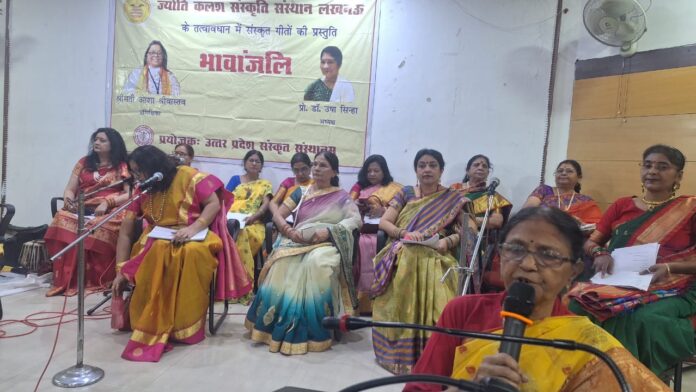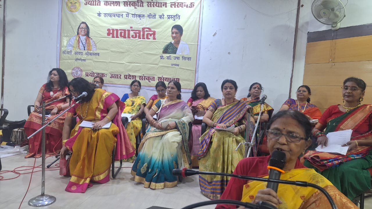 लखनऊ 3 मार्च ज्योति कलश एवभ संस्कृत संस्थान के संयुक्त तत्वावधान में संस्कृत गीतों की 15 दिवसीय कार्यशाला का द 16 फरवरी से 2 मार्च तक गोमतीनगर के आमोद आश्रम मे संपन्न हुई। जिसके समापन के लिए सभी प्रतिभागी “कैफी आजमी ” प्रेक्षागृह मे एकत्र हुए। 24 प्रतिभागियों ने आकाशवाणी दूरदर्शन की प्रतिष्ठित लोक गायिका आशा श्रीवास्तव के निर्देशन मे संस्कृत गीतो का प्रशिक्षण प्राप्त किया। सरस्वती वंदना , जगदम्बा वंदना, शिव वंदना , पुत्री जनम सोहर , बनना , होली गीतो जैसे विभिन्न गीतो को सभी प्रतिभागियो नेसंस्कृत मे याद करके गाया।कार्यक्रम अध्यक्ष उत्तर प्रदेश संस्कृत संस्थान के वरिष्ठ प्रशासनिक अधिकारी श्री जगदानंद झा, मुख्य अतिथि लखनऊ विश्वविद्यालय संस्कृत विभाग के विभागाध्यक्ष डॉ अभिमन्यु सिंह ,अति विशिष्ट अतिथि सूचना विभाग के पूर्व संयुक्त निदेशक एवं लखनऊ की उत्कृष्ट त्रैमासिक पत्रिका कला वसुधा के प्रधान संपादक श्री अशोक बनर्जी तथा विशिष्ट अतिथि ऑल इंडिया रेडियो लखनऊ की पूर्व उपनिदेशक श्रीमती रश्मि चौधरी ने प्रतिभागियो को प्रमाण पत्र प्रदान किये।संस्था की अध्यक्ष प्रो डॉ उषा सिन्हा जी ने बताया संस्कृत भाषा के प्रचार एवं प्रसार हेतु भजन और संस्कार गीतो को संस्कृत माध्यम से जनसाधारण में प्रस्तुत कर लोगों में संस्कृत भाषा के प्रति रुचि जगाने हेतु यह कार्यक्रम आयोजित किया गया है ।उत्तर प्रदेश संस्कृत संस्थान के द्वारा देवभाषा संस्कृत के प्रचार प्रसार के लिए विभिन्न संस्कृत भाषा के आयोजन प्रायोजित किये जाते है जिसकी एक गायन प्रस्तुतीकरण सबने आज देखी ।कार्यक्रम में मुख्य अतिथियों द्वारा दीप प्रज्ज्वलन के उपरांत संस्कृत के गीतों की प्रस्तुति की गई । डॉ लक्ष्मी रस्तोगी, ज्योति किरण रतन, शक्ति श्रीवास्तव कल्पना सक्सेना जया श्रीवास्तव, रमा अग्निहोत्री, गीता सिंह ,सुषमा अग्रवाल,, शिखा श्रीवास्तव, मनु राय ,सरिता श्रीवास्तव, कल्पना सक्सेना बीना सवसेना, विनीता श्रीवास्तव, प्रीति श्रीवास्तव, अलका चतुर्वेदी ,सुमन मिश्रा , अर्चना गुप्ता, अपर्णा सिंह, सुषमा, अनेक कलाकार एवं गणमान्य जन उपस्थित रहे।