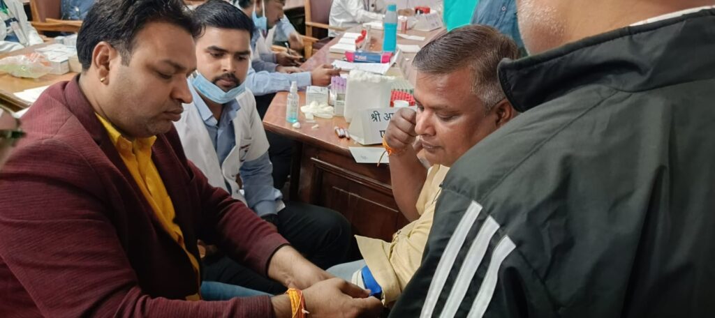 आज दो दिवसीय स्वास्थ्य शिविर में पधारे मुख्य अतिथियों का स्वागत एवं सम्मान किया गया