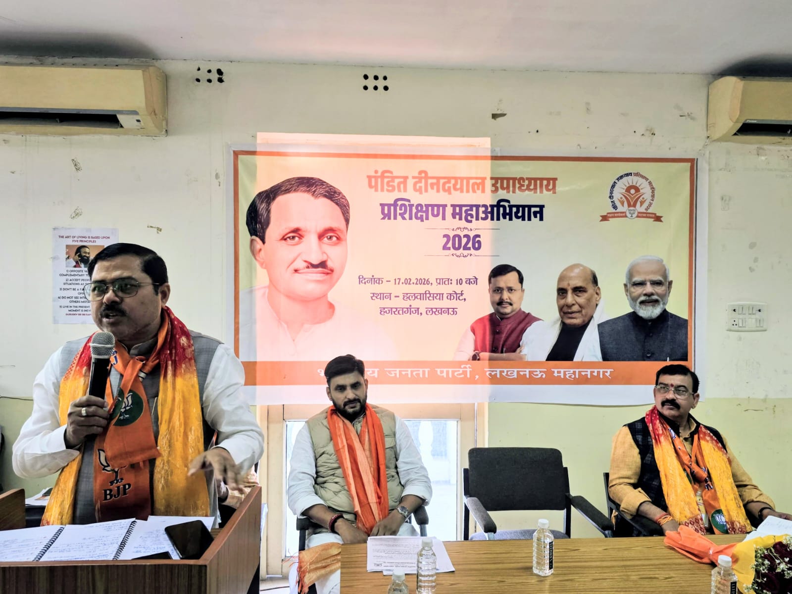 पंडित दीनदयाल उपाध्याय प्रशिक्षण महाभियान की लखनऊ महानगर कार्यशाला हजरतगंज स्थित हलवासिया कोर्ट सभागार में सम्पन्न हुई। कार्यशाला को मुख्य वक्ता प्रदेश महामंत्री संजय राय, वरिष्ठ भाजपा नेता डॉक्टर नीरज सिंह और महानगर अध्यक्ष आनंद द्विवेदी ने संबोधित किया।