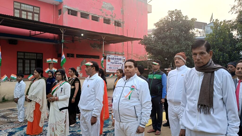पतंजलि योगपीठ के योग गुरु श्री राजेश कुमार पाण्डेय जी ने ध्वजारोहण किया