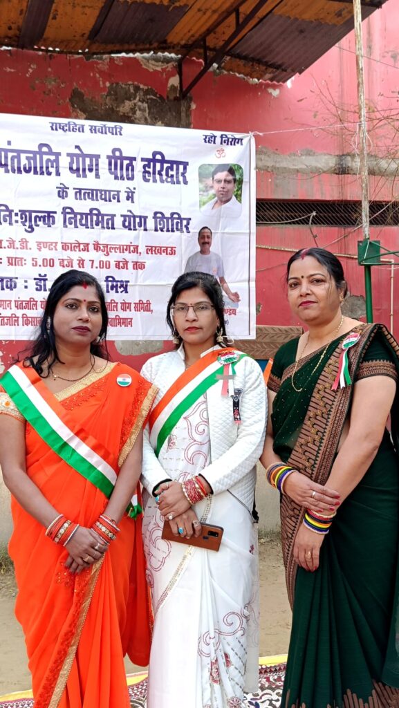 पतंजलि योग पीठ उत्तरी लखनऊ ने 26 जनवरी को 77 हवा गणतंत्र दिवस मनाया इस शुभ अवसर पर पतंजलि योगपीठ के योग गुरु श्री राजेश कुमार पाण्डेय जी ने ध्वजारोहण किया इस अवसर पर योग गुरु ने मां भारती के चरणों में कोटि-कोटि नमन किया और अमर शहीदों को याद करते हुए भारत के सभी सम्मानित नागरिकों को देश के प्रति जागरूक रहने का निवेदन किया कि अपने देश के सुरक्षा के प्रति हमेशा तत्पर रहे अपनी आजादी को हम हरगिज मिटा सकते नहीं सर कटा सकते हैं लेकिन सर झुका सकते नहीं