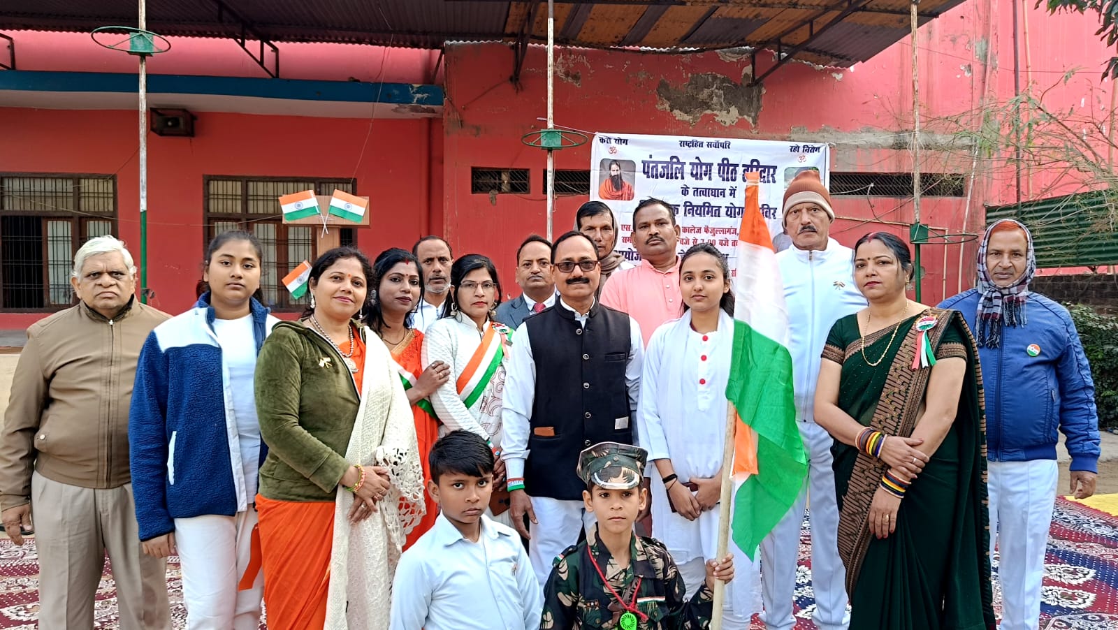 पतंजलि योगपीठ के योग गुरु श्री राजेश कुमार पाण्डेय जी ने ध्वजारोहण किया