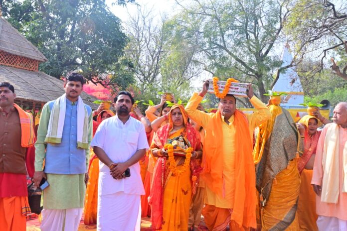 लक्ष्मणपुर। पूरे खुशीयाली में श्रीमद भागवत कथा के पहले कलश यात्रा का आयोजन शनिवार की सुबह 10:00 बजे हुआ। महिलाएं सिर पर कलश रखकर हनुमत निकेतन धाम रघवापुर, सगरा शिव मंदिर होते हुए बूढ़ेश्वार नाथ धाम में पूजा अर्चना किए उसके बाद घर पर कलश पूजन का समापन हुआ। डीजे की धुन पर नाचते दिखे। मुख्य यजमान महेंद्र शुक्ला व कांति शुक्ला रही।