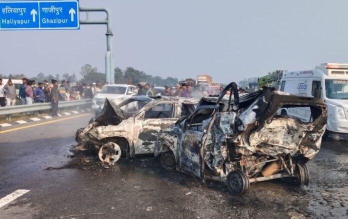 पूर्वांचल एक्सप्रेस-वे पर दिल दहला देने वाला हादसा दो कारों में टक्कर 5 की मौत 4 घायल