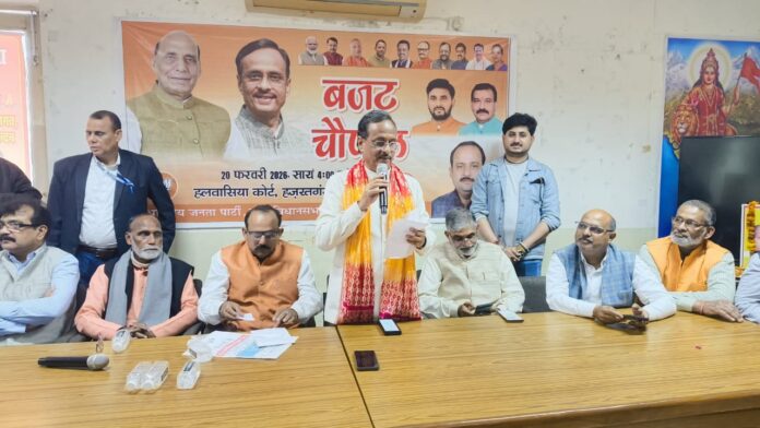 लखनऊ हजरतगंज स्थित हलवासिया कोर्ट में भाजपा लखनऊ महानगर मध्य विधानसभा की बजट चौपाल बैठक में मुख्य अतिथि राज्यसभा सांसद एवं पूर्व उपमुख्यमंत्री डॉक्टर दिनेश शर्मा ने बजट को जनकल्याणकारी और विकसित भारत के निर्माण की दिशा में महत्वपूर्ण कलम बताया। कार्यक्रम में रमेश तूफानी , मध्य विधानसभा उपविजेता रजनीश गुप्ता अभियान संयोजक घनश्याम दास अग्रवाल, सुधीर हलवासीया, सुधाकर त्रिपाठी, उपस्थित रहें।