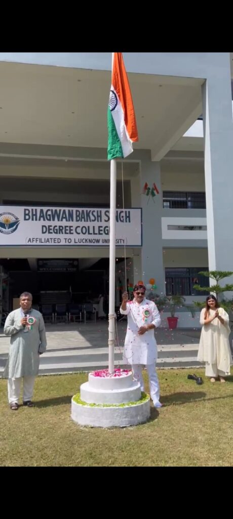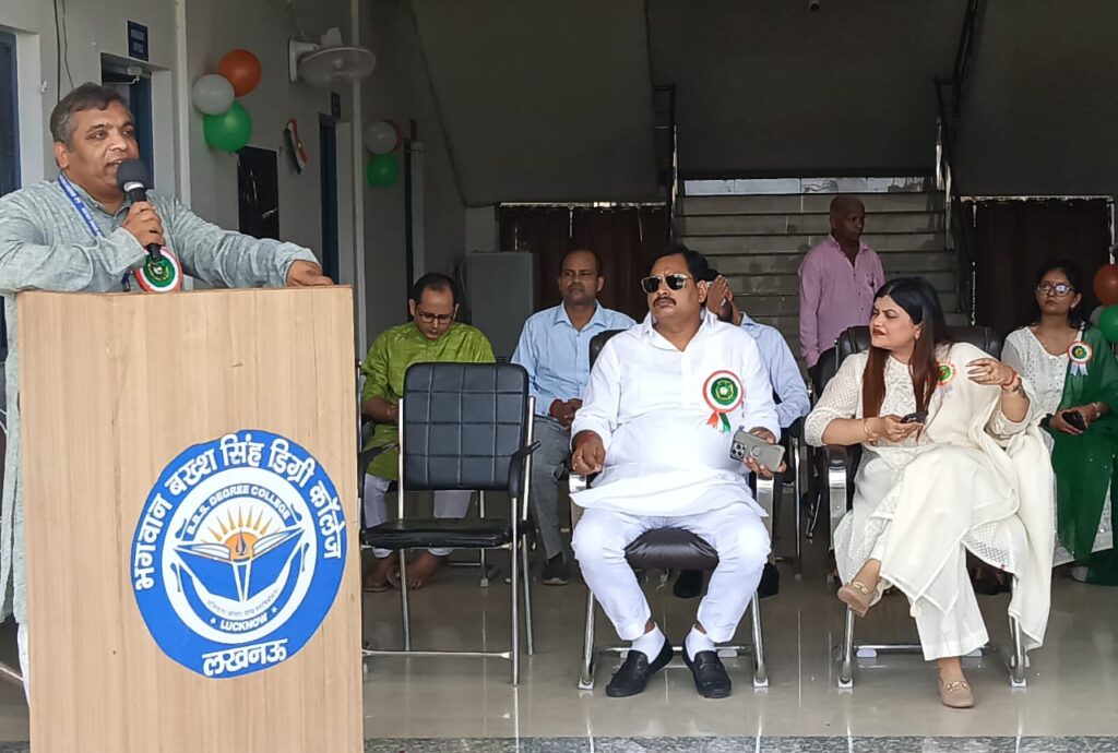 लखनऊ 15 AUGUST 2025 भगवान बक्श सिंह डिग्री कॉलेज लखनऊ की प्रीमियम शिक्षण संस्थान में स्वतंत्रता दिवस का कार्यक्रम आयोजित किया गया इस अवसर पर डिग्री कॉलेज के प्रबंधक एवं प्राचार्य द्वारा ध्वजारोहण किया गया ध्वजारोहण उपरांत कॉलेज के प्राचार्य प्रोफेसर डॉक्टर महेश गुप्ता ने कार्यक्रम को संबोधित करते हुए स्वतंत्रता आंदोलन पर छात्रों को प्रेरित किया इस अवसर पर भगवान सिंह बक्श डिग्री कॉलेज के समस्त शिक्षक गणों ,छात्र एवं स्थानीय लोगों उपस्थित रहे डॉक्टर महेश गुप्ता द्वारा छात्रों का आह्वान किया कि वह उच्च गुणवत्ता पूर्वक शिक्षा प्राप्त कर देश के विकास में अपने अहम भूमिका निभाएं तथा राष्ट्र निर्माण का सपना हमारे स्वतंत्रता सेनानियों के आशा के अनुरूप करें तथा देश का नाम रोशन करें